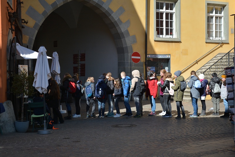 Nach rund 3 Stunden Zugfahrt erreichten wir am frühen Nachmittag die Jugendherberge in Überlingen. Gespannt eroberten wir nach einer kurzen Einweisung in die Hausordnung unsere Zimmer. Zur Zufriedenheit aller waren die Zimmer gut in Schuss und auch die sonstigen Möglichkeiten, innerhalb der Jugendherberge aktiv zu werden, waren nicht ohne. So standen uns u. a. zwei Tischtennisplatten, eine Halle für Ballsport und ein Fußballplatz im Außenbereich zur Verfügung. Auch das kulinarische Angebot im Speisesaal war vielfältig, sodass für jeden Geschmack etwas dabei war.