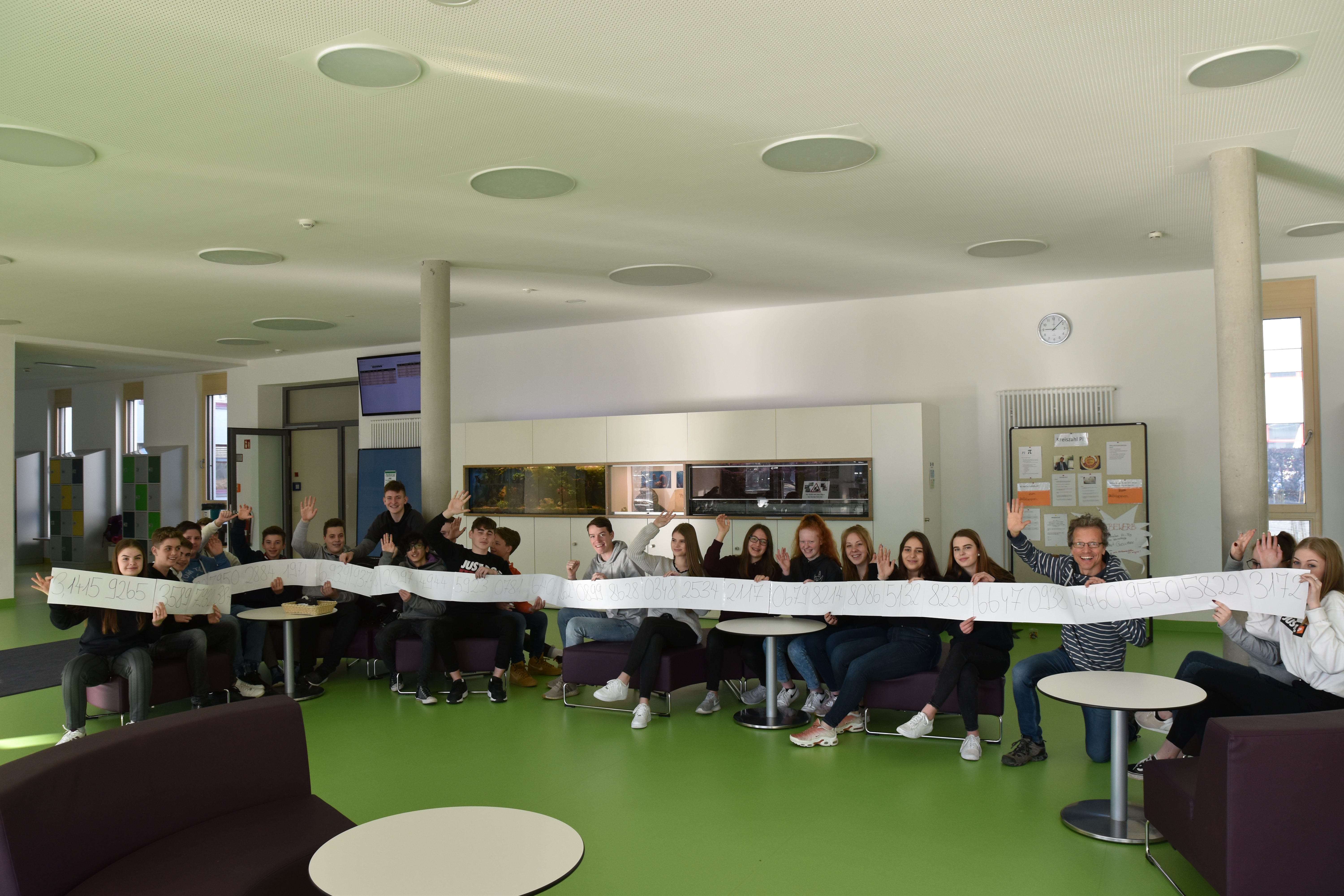 die Klasse 9c ruft die Schülerinnen und Schüler zu einem Wettkampf der besonderen Art auf. Alle sind aufgefordert möglichst viele Nachkommastellen der faszinierenden Zahl Pi in der richtigen Reihenfolge auswendig zu lernen. Was Pi ist und viele weitere Informationen zu dieser unendlich langen Zahl, haben die 9c´ler im Foyer der Schule ausgehängt, u.a. die Zahl Pi selbst mit 140 Nachkommastellen. Am internationalen Pi-Tag (14.03.19) wird das gelernte Wissen von den Schülerinnen und Schülern abgerufen und der Klassen-/ Stufen- und Schulsieger bestimmt. Die jeweiligen Sieger erhalten Preise, wenn sie mindestens 30 Nachkommastellen aufzählen können. Die Klasse 9c freut sich auf die Auswertung und die einzelnen Pi-Rekorde.