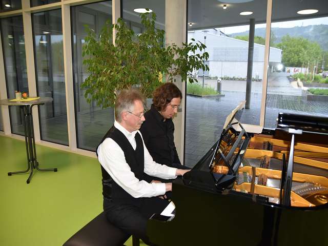 Am Mittwoch, dem 08. Mai wurde in der Lothar-von-Kübel Realschule feierlich der neue C. Bechstein-Flügel eingeweiht. Seit über 10 Jahren war es ein Anliegen der Musikfachschaft der Schule, das alte und marode Instrument auszutauschen. Im Zuge des Neubaus wurde dieser lang gehegte Wunsch erfüllt und die Wahl fiel auf einen C. Bechstein Flügel mit einer Länge von 2,10 m aus dem Jahr 2006. Um diese Neuerwerbung gebührend zu feiern, gaben Denis Steinmetz und Bastian Hellinger ein Konzert mit Werken von Chopin, Debussy und Dvořák. Ergänzt wurde das Programm mit Vokalwerken des Männerensembles Schubert Hoch 12, das unter anderem aus Mitgliedern des MGV Vormberg und Winden besteht. In der über einstündigen Abendmusik konnten die Zuhörer in die Klangwelt des neuen Instruments eintauchen und danach auf einen gelungenen Abend anstoßen.