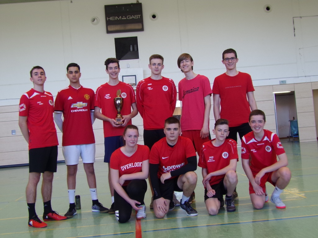 Als Favorit gestartet, gelang es in der Klassenstufe 9/10 der 10c sich gegen eine hart kämpfendes Team der 9a mit 1:0 durchzusetzen. Als weitere Belohnung durften die 10. Klasse am Ende noch gegen das Lehrerteam antreten. In einem spannenden Spiel stand es am Ende 1:1. und das Siebenmeterschießen ging knapp für das Schülerteam aus.
