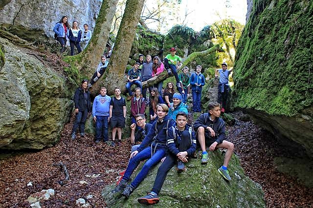 Die folgenden Tage hatten alle drei Klassen unterschiedliche Programmpunkte. Zum Beispiel wurden Teamspiele gespielt, Geocaching gemacht oder Feuerholz fürs Pizzabacken gesammelt, um gemeinsam abends Pizza zu backen. Die Klassen verbrachten einen ganzen Tag im Naturschutzgebiet, haben am Lagerfeuer Suppe gekocht oder gegrillt und den „Lochenstein“ erklommen. Außerdem durften wir Bogen schießen ausprobieren und in der Kletterhalle klettern. Zwei Klassen sind auch ins Jurameer „abgetaucht“ und haben nach Fossilien gesucht.