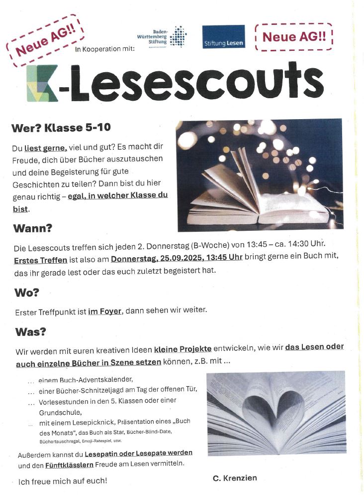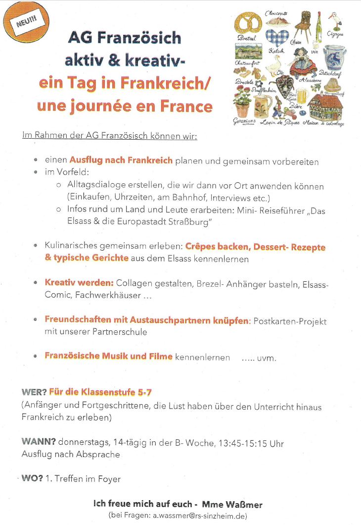 Wann: donnerstags, 14-tägig 13:45-15:15 Uhr Wer: Klasse 9-10 Lehrer/in: Frau Käckel |