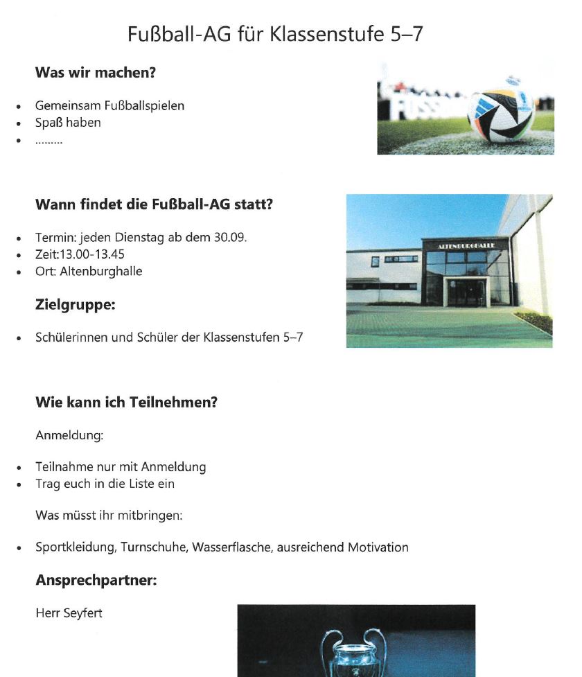 Wann: mittwochs 13:30 Uhr – 15:00 Uhr Wer: Klasse 5-10 Lehrer/in: Herr Götz |