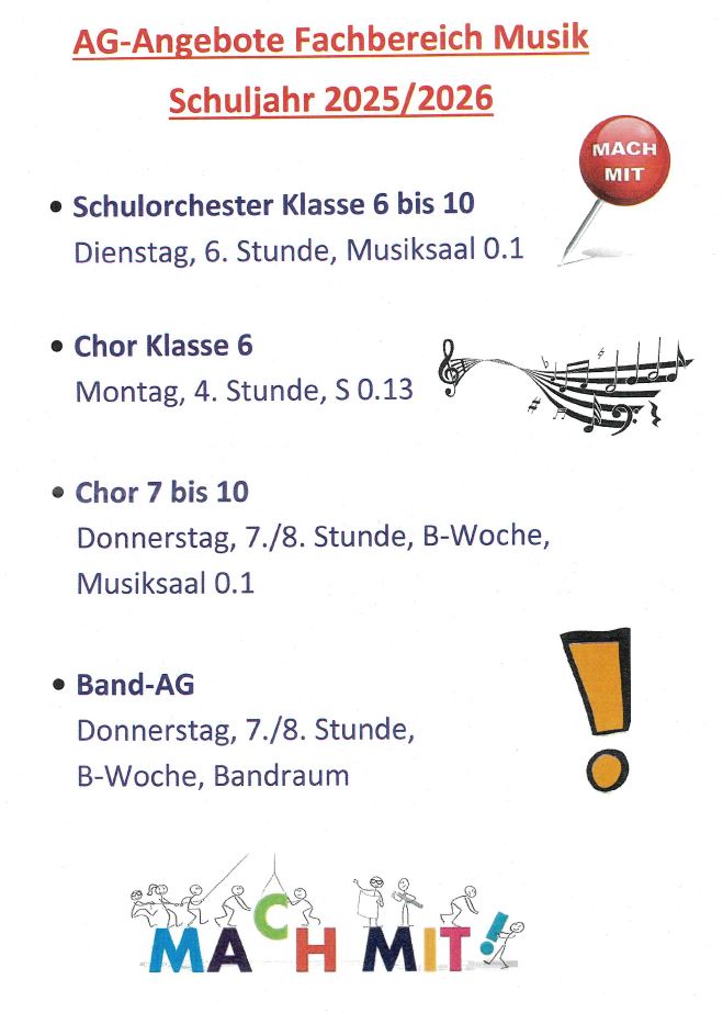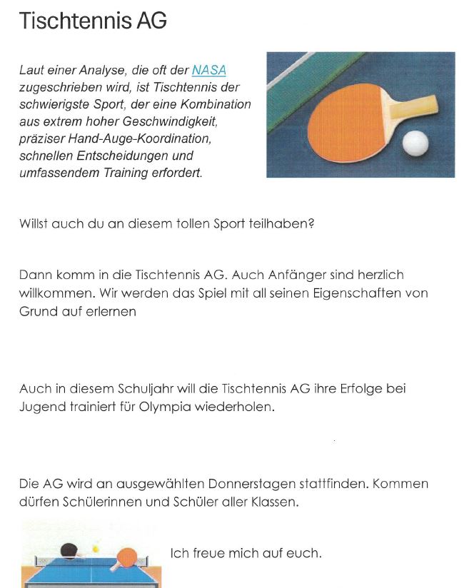 Übersicht über die zum Schuljahresbeginn ausgeschriebenen AG-Angebote.