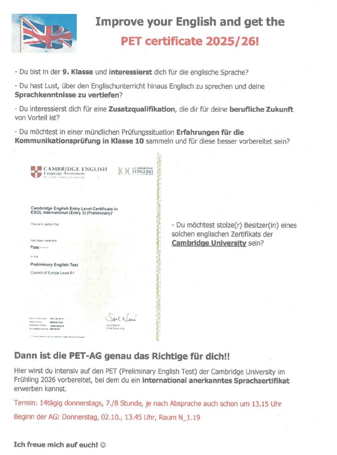 Wann: 10 Termine, Beginn 15.20.2025 Wer: Klasse 8-10 Lehrer/in: Herr Alstadt |